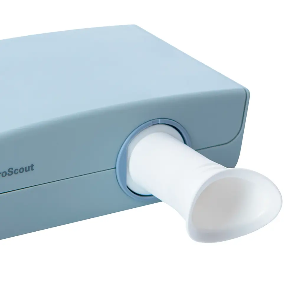 SpiroScout SP Plus usa nuestras exclusivas boquillas higiénicas, ScoutTube, que cuentan con una membrana que evita la contaminación cruzada. Además, su forma oval es ideal para pacientes de cualquier edad.